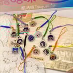 Pick your main and clip a little sparkle to your phone! These charms are cut from rainbow/iridescent acrylic, so the color subtly shifts in different light. The back shows a cool blue hue, and each character comes with a color-matched strap.