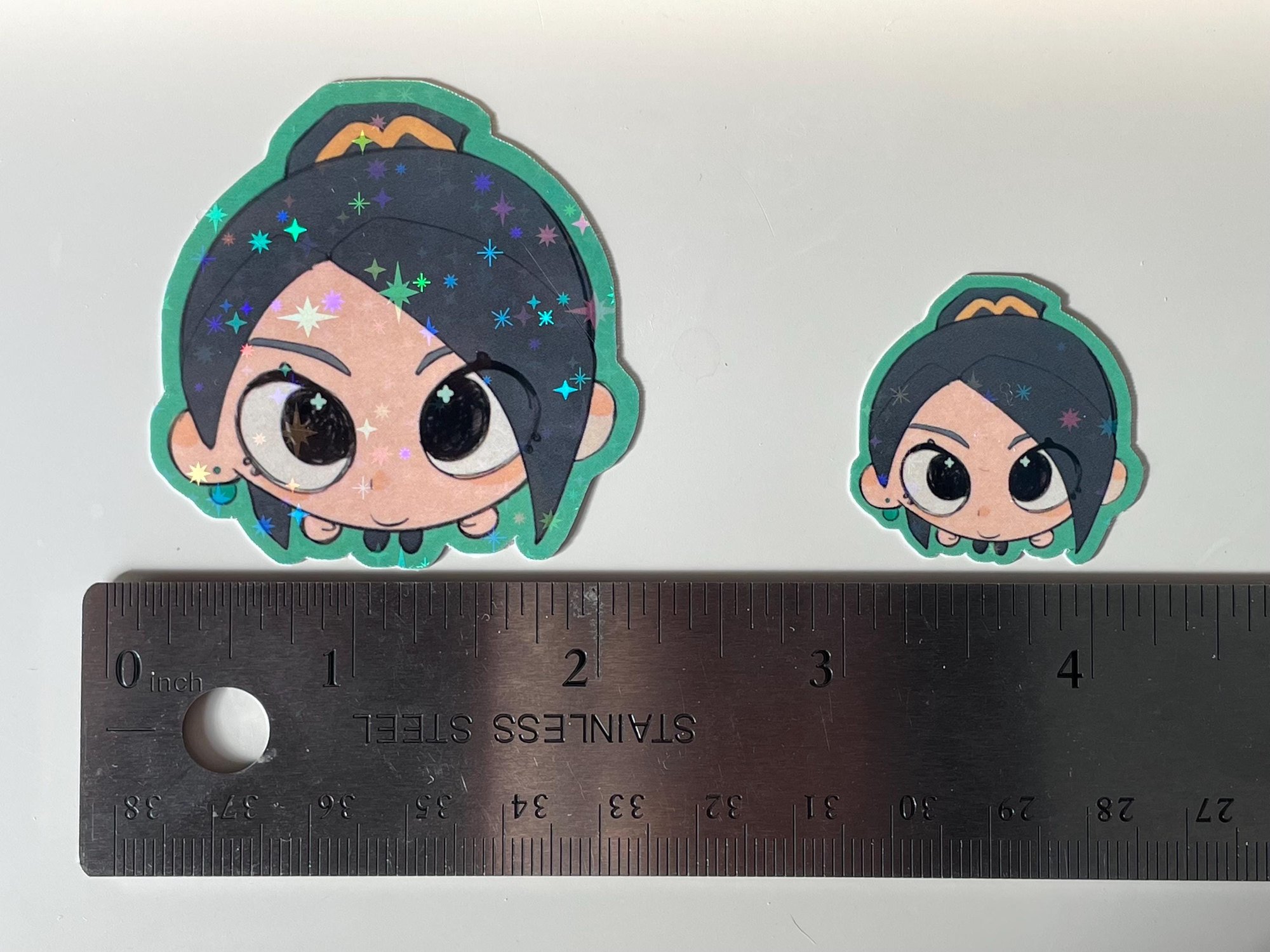 Original product name: Valorant Starry Holographic Sticker - Clove / Sage / Omen / Jett / Neon / Phoenix / Gekko / Chamber - 5 cm and 3 cm